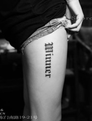 大腿英文性感纹身