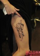 创意花体英文大腿纹身作品