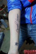 小臂内侧英文字母星星纹身作品