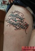 清新花体英文大腿纹身作品