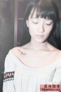 小美女锁骨英文纹身作品