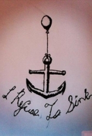 黑色简约线条船锚气球与英文短语纹身手稿素材