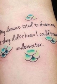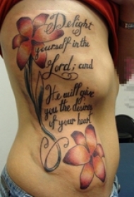 女生侧肋彩绘唯美花朵与英文句子纹身图片