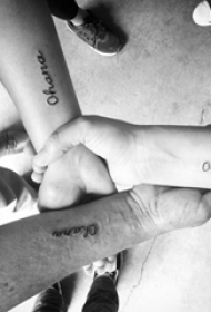 闺蜜手臂上黑色抽象线条英文单词纹身图片