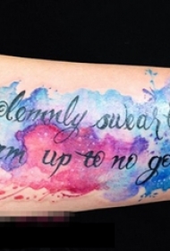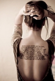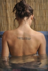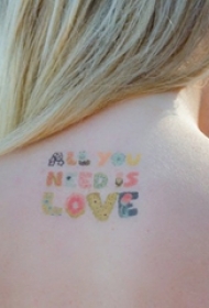 女生背部彩绘水彩创意卡通花体英文纹身图片