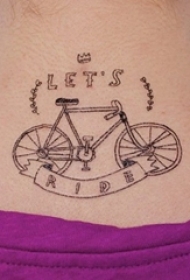 男生颈后黑色几何线条英文单词和单车纹身图片