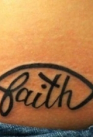 女生肩部黑色抽象线条几何心形和英文单词纹身图片