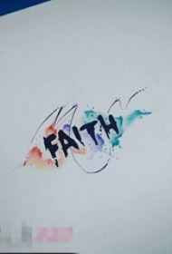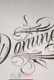 黑色线条花体英文水彩泼墨文艺纹身手稿