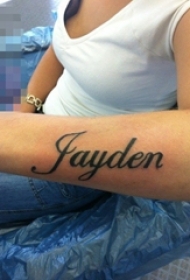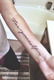 女生手臂上黑色线条创意花体有意义英文纹身图片