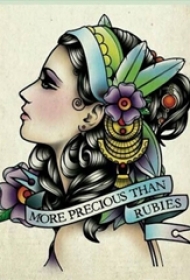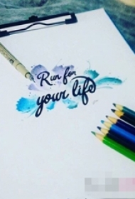 漂亮的彩绘英文短句和植物素材人物肖像纹身图片