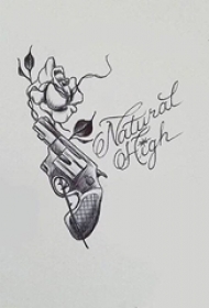 个性的黑色几何线条英文单词花朵和手枪纹身手稿