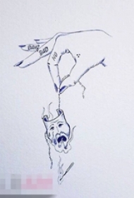 简单线条勾勒的手部英文单词和面具纹身手稿