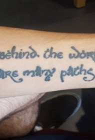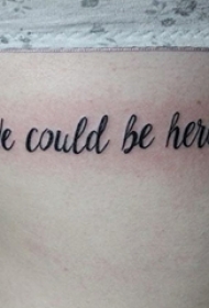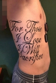 男生侧腰上黑白抽象线条花体英文纹身图片