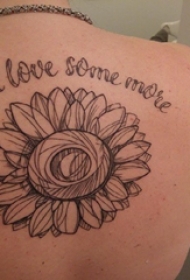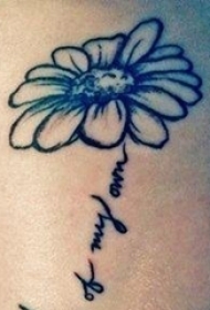 女生手臂上黑白植物花体英文素材花朵纹身图片