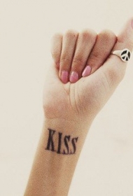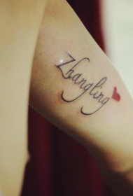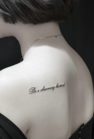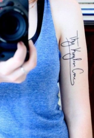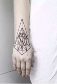 女生手臂上黑白简约几何线条英文单词纹身图片