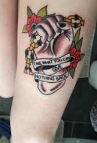 女生手臂上彩绘植物素材英文短句和手部纹身图片
