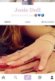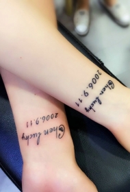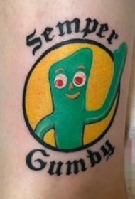 女生小腿上彩绘几何英文单词卡通人物纹身图片