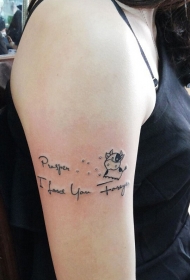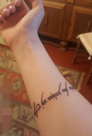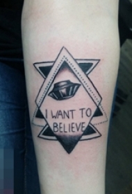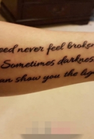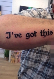 手臂上黑白灰风格几何元素点刺技巧英文短句点线纹身图片
