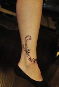 小腿彩绘天蓝色抽象线条水浪花有意义的英文短句纹身图案