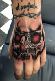 骷髅和英文纹身图案 女生手上骷髅和英文纹身图片