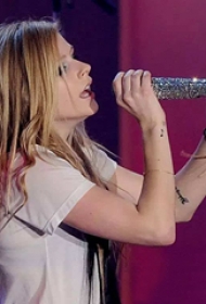 艾薇儿纹身图案 明星手臂上音符和英文纹身图片