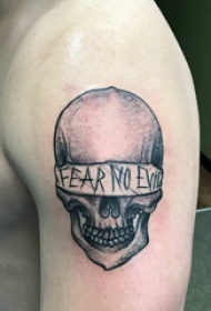 大臂纹身图片 男生大臂上蒙面的骷髅纹身图片
