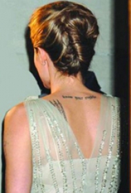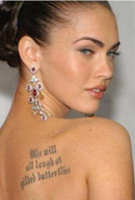 美国纹身明星 梅根福克斯后背上极简的英文纹身图片
