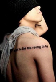 明星纹身 明星后背上黑色的英文纹身图片
