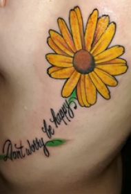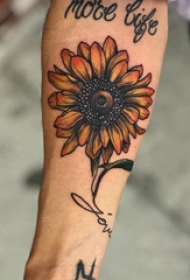 植物纹身 男生手臂上英文和向日葵纹身图片