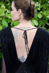 国际纹身明星 明星后背上黑色的英文纹身图片