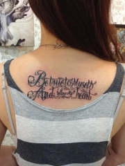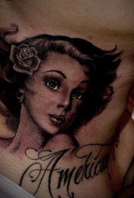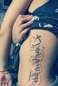 靓女腰部完美新潮的图腾凤凰字母纹身图案