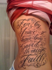 男性腰部黑色简约线条纹身的英文单词和数字字体纹身图片