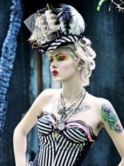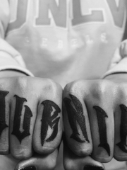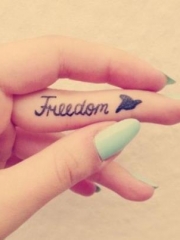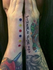 欧美潮女个性胸部英文与手臂彩色纹身图案