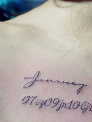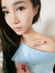 妩媚卖萌的美女锁骨英文字母纹身图片