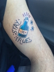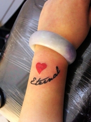 手臂上传统彩色纹身花体英文字卡通纹身小图案