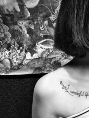 聆听花语,美女锁骨鲜艳英文小清新纹身