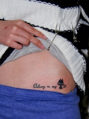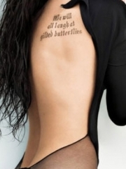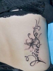 美女腰部精美的彼岸花与字母藤蔓纹身图片