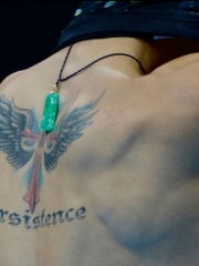 张继科裸身大秀后背十字架翅膀英文纹身图片