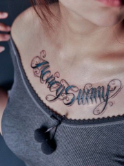 美女胸部性感英文字母纹身图案