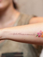 手臂小花与英文小清新纹身图案