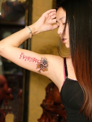 美女个性手臂骷髅英文字母刺青作品