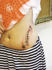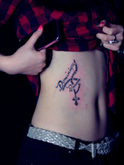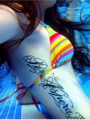 明星麦莉赛勒斯性感胸部英文纹身作品