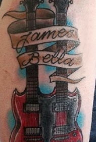 大臂纹身图 男生大臂上英文和吉他纹身图片