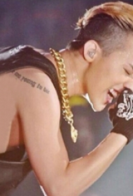 权志龙的纹身 明星肩部黑色的英文纹身图片