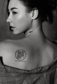 张柏芝的纹身 明星后背上印章和英文纹身图片
