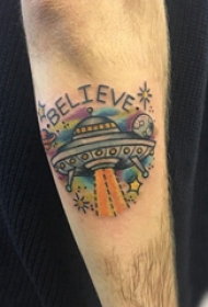 手臂纹身素材 男生手臂上英文和飞碟纹身图片