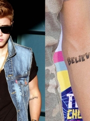 明星贾斯汀比伯手臂内侧BELIEVE英文字母纹身图案