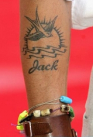 欧美小腿纹身 男生小腿上黑色的花体英文纹身图片