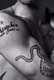国际纹身明星 Adam Levine 手臂上老虎和英文纹身图片