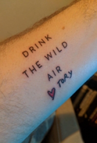 极简线条纹身 男生手臂上心形和英文纹身图片